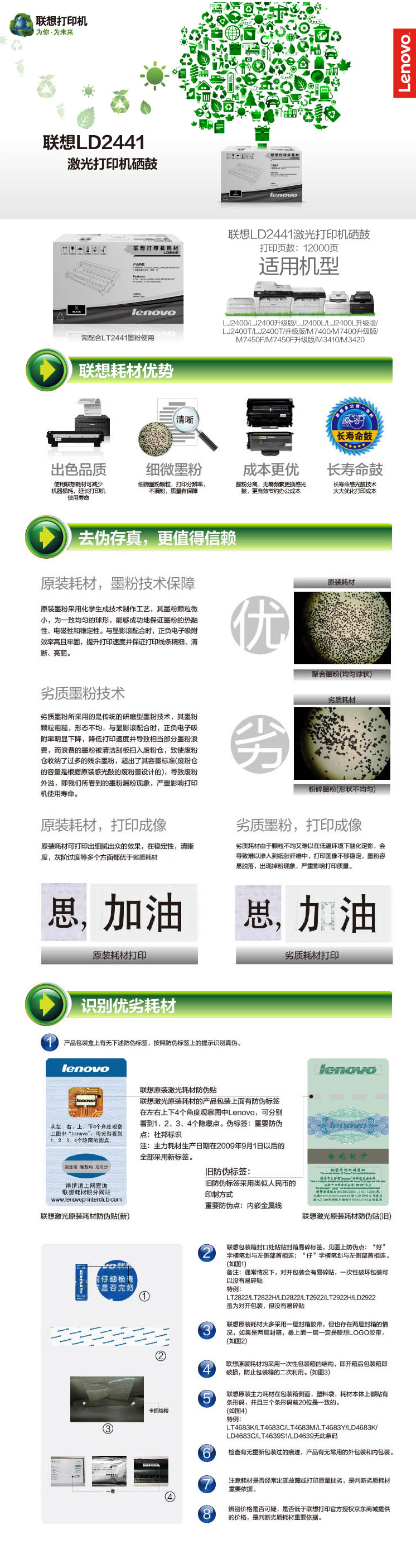 联想(Lenovo) LD2441 原装硒鼓适用LJ2400T LJ2400 M7400 M7450F M3410 M3420打印机 硒鼓