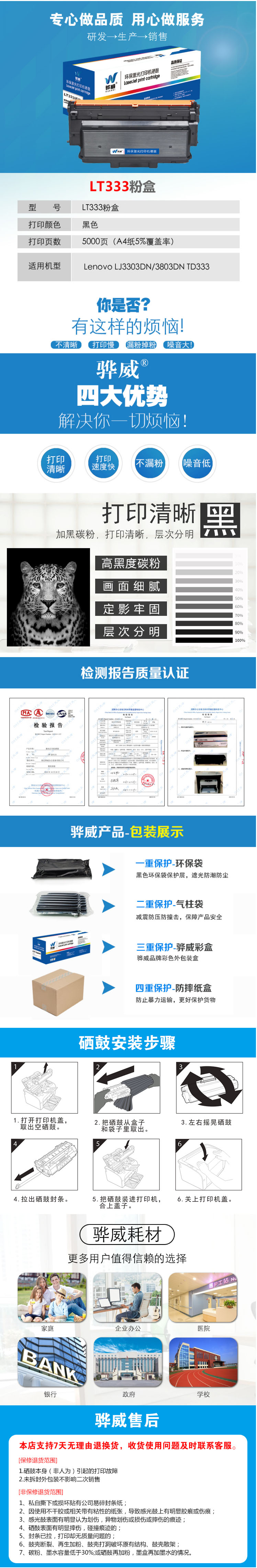 骅威 LT333粉盒 适用联想 LJ3303DN墨盒 LJ3803DN粉盒 lt333 打印机墨盒