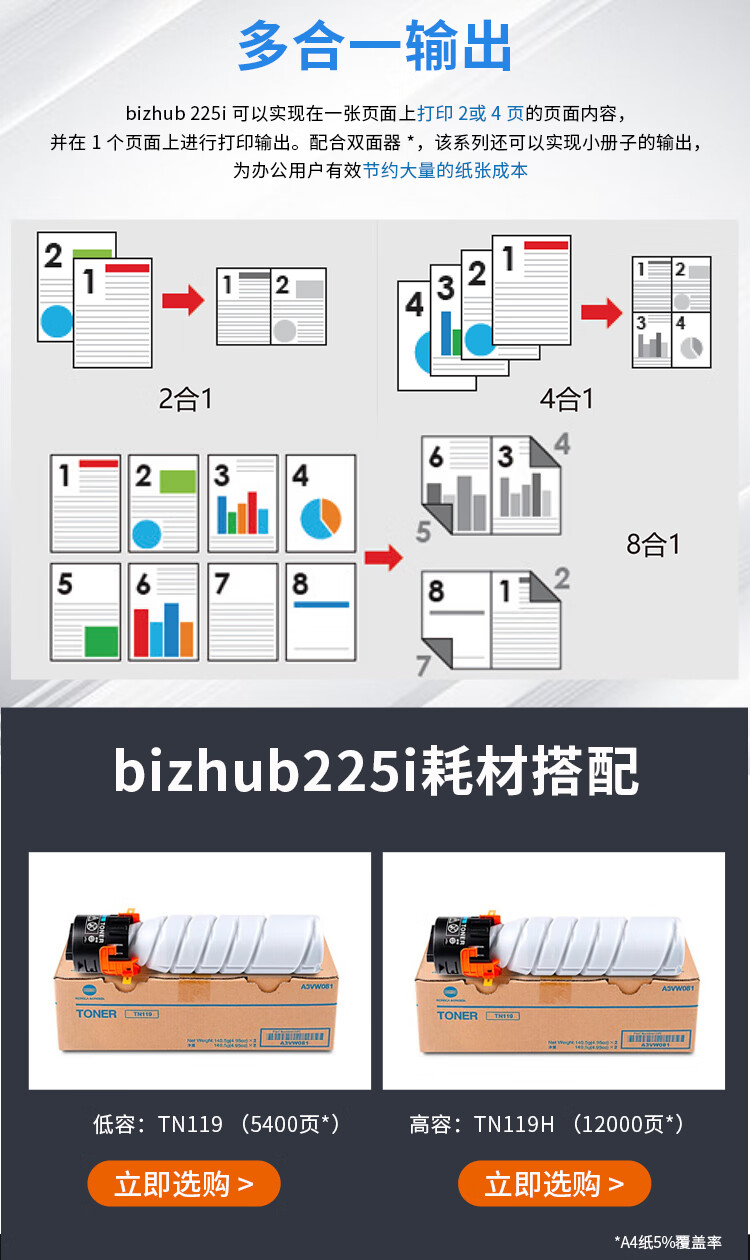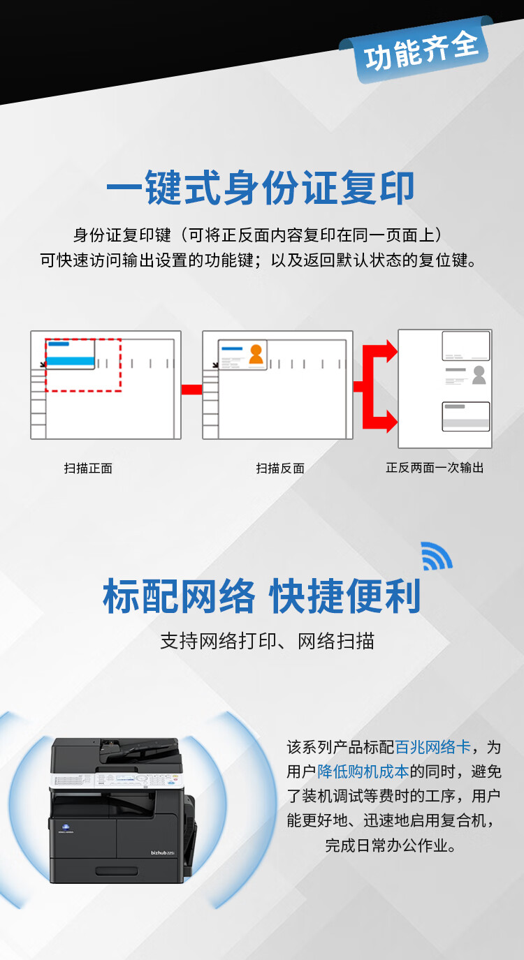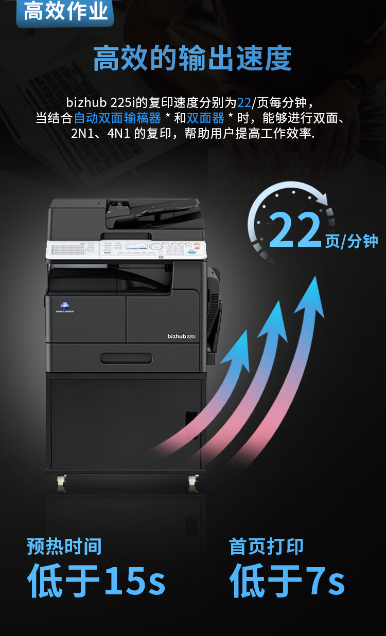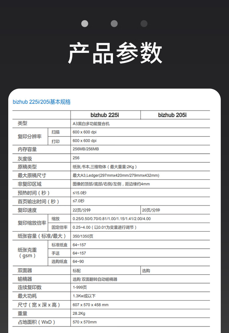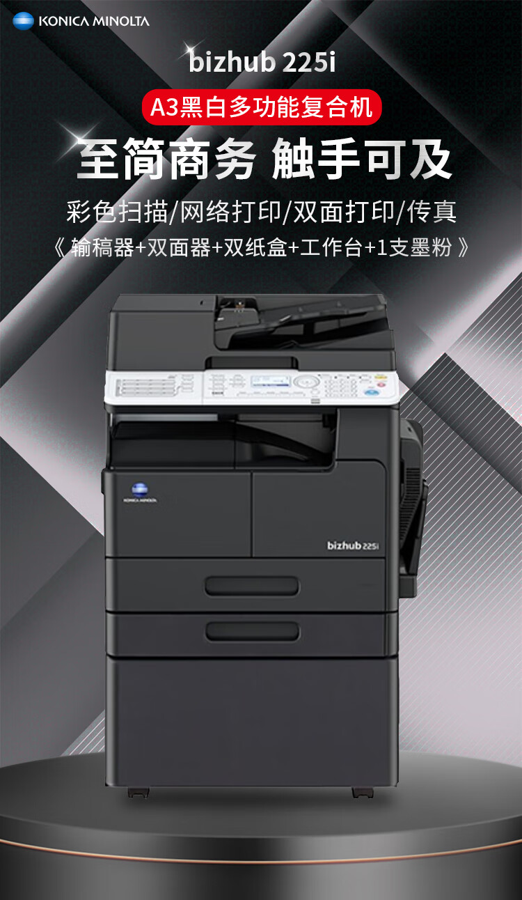 • 商品名称:柯尼卡美能达 bizhub205i\/215i\/225i a3打印机复印一体机黑白复合机网络扫描 225i主机+输稿器(双面打印复印)