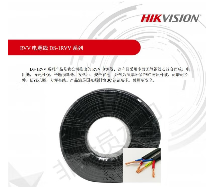 海康威视(HIKVISION) 监控专用网线 工程级无氧铜内芯双绞线 PVC材质抗拉耐用 高密度双绞结构 两芯200m电源线DS-1RVV2C100/E