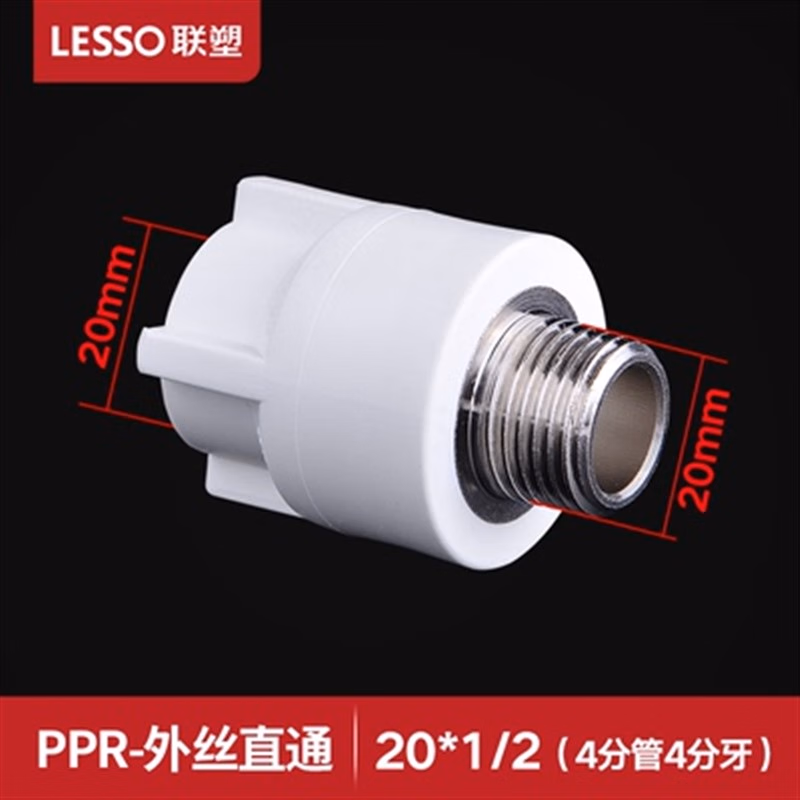 联塑 LESSO PPR水管配件4分20阀门6分25管材接头配件热熔内外丝直接弯头 外螺纹直通20*1/24分管4分牙