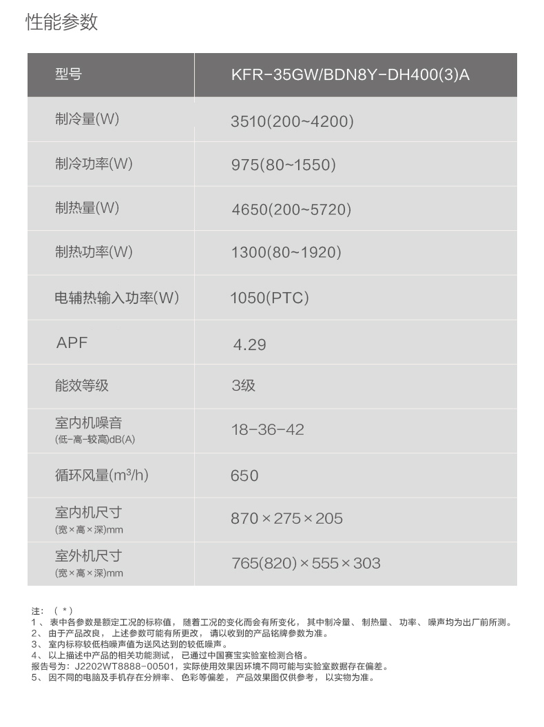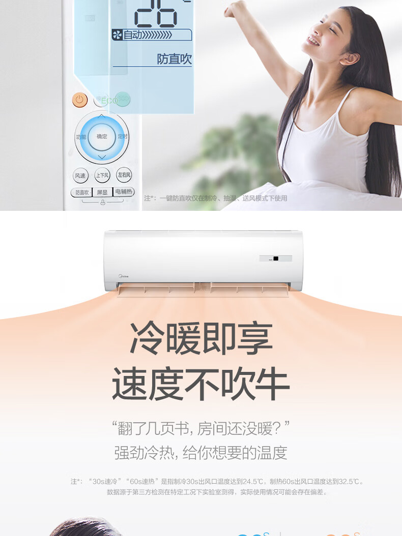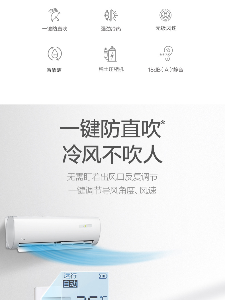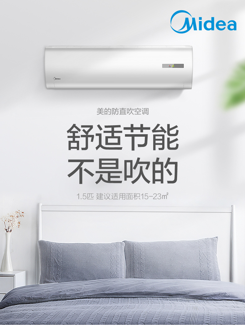 美的(Midea) KFR-35GW/BDN8Y-DH400(3)A 1.5匹 省电星 新三级能效 变频冷暖 壁挂式空调挂机