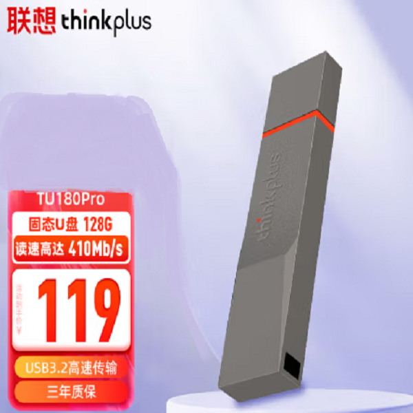 联想(Lenovo) ThinkPlus 128GB优盘 USB3.2 TU180Pro系列 大容量金属U盘