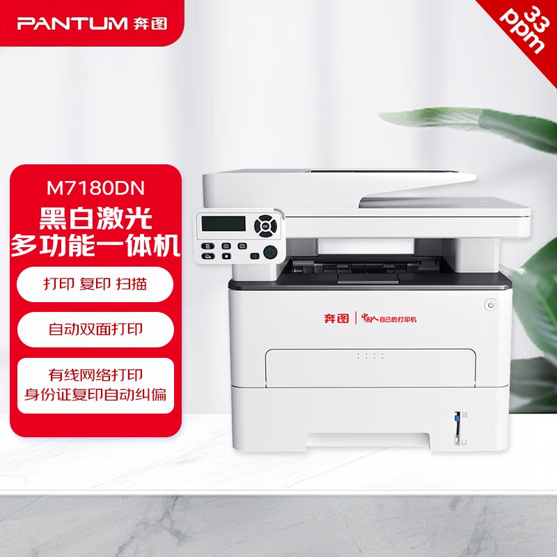 奔图(PANTUM) M7180DN 黑白多功能一体机 A4激光打印机自动双面打印/连续复印扫描办公多功能一体