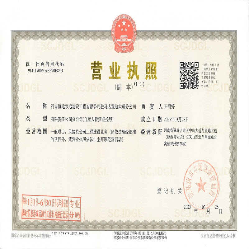 河南恒屹致远建设工程有限公司驻马店置地大道分公司
