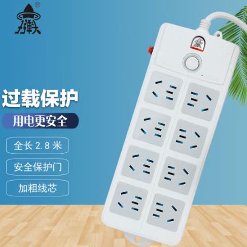 子弹头 TS-025c新国标 8位全长2.8米 总控开关 过载保护 电源插座/插排/排插/插线板