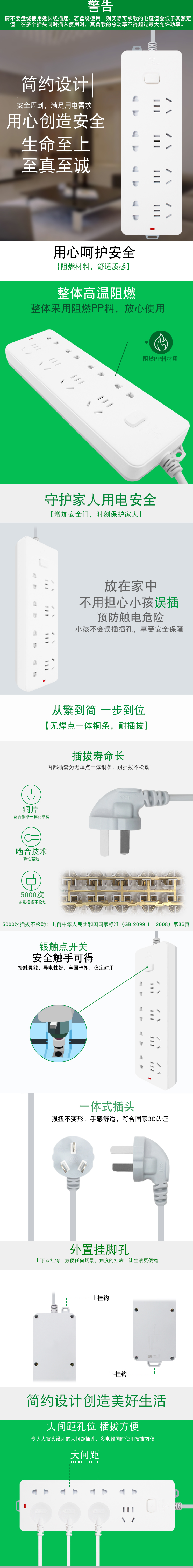 公牛(BULL) GN403-10新国标插座插排 8位总控全长10米