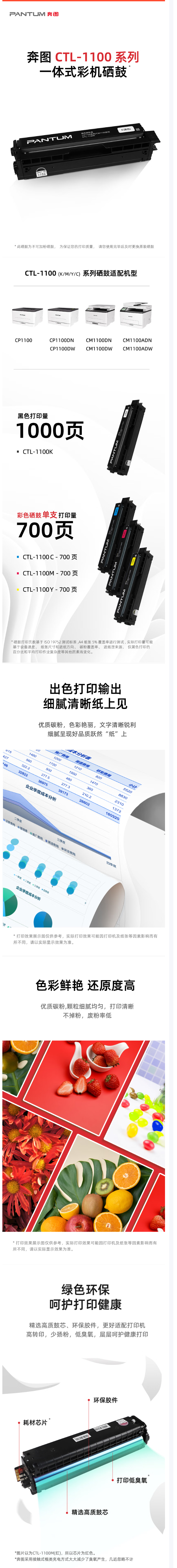 奔图(PANTUM) CTL-1100C 原装青色粉盒适用CP1100/CM1100DN/CM1100ADN/CP1100DN/CM1100DW/CM1100ADW打印机硒鼓