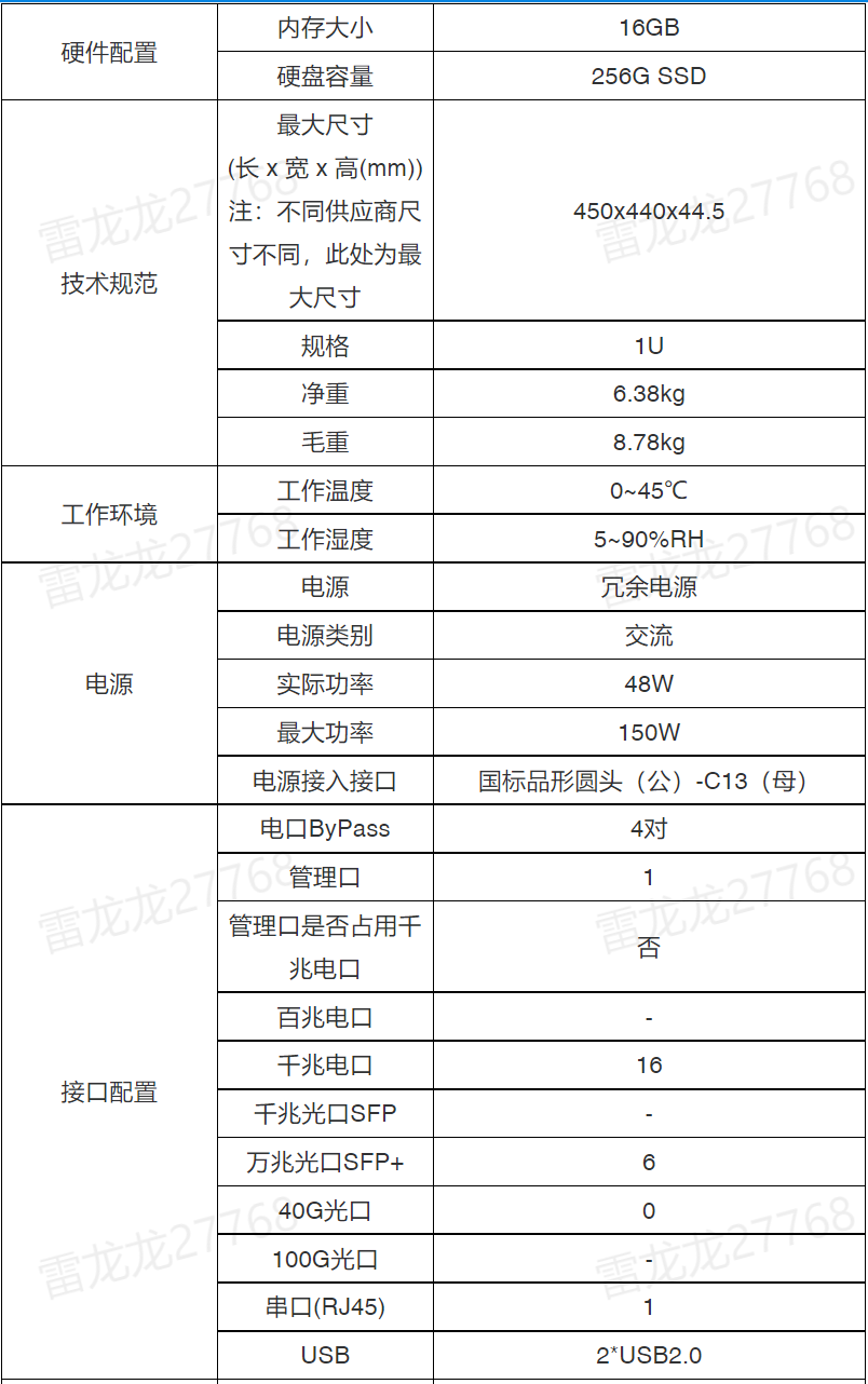 接口: 16千兆电口;6万兆光口SFP+;