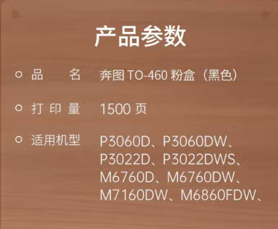 奔图(PANTUM) TO-460 原装粉盒 适用于 P3060D/P3060DW/M6760D/M6760DW/7160DW/6860FDW打印机