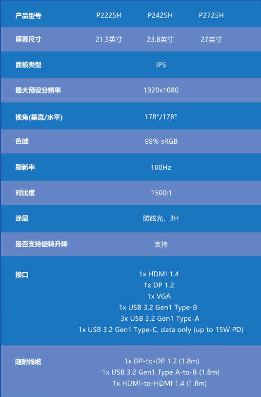 戴尔(DELL) P2425H 23.8英寸 办公显示器 FHD IPS 硬件级防蓝光