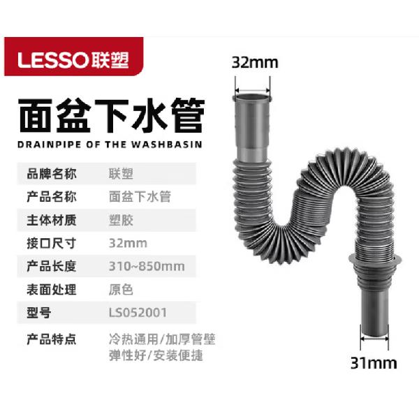 联塑 LESSO 面盆下水管出水管 可伸缩水管弯曲水管防臭密封 洗脸盆面盆排水管接口尺寸32mm