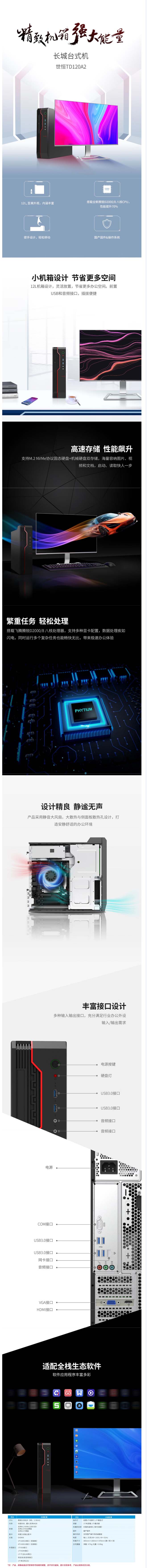 长城(Great Wall) 世恒TD120A2 飞腾D2000/16G/256G+1T/2G独显/单主机 台式机 试用版银河麒麟/统信