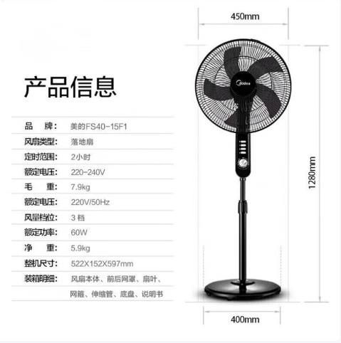 • 商品名称:美的(Midea) FS40-15F1 电风扇家用立式落地扇客厅卧室宿舍16寸风扇循环风扇大风力易拆洗转页扇