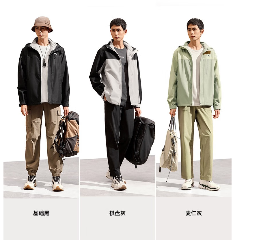 安踏(ANTA) 三合一防泼水外套丨户外加绒软壳衣男防暴雨拼色耐磨登山防风衣 【摇粒绒三合一】奶咖灰/基础黑6610-3