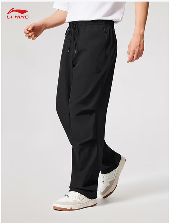 李宁(LI-NING) )反伍运动裤长裤男2025冬季加绒保暖防泼水宽松直筒伞兵裤AYKV557 -3黑色