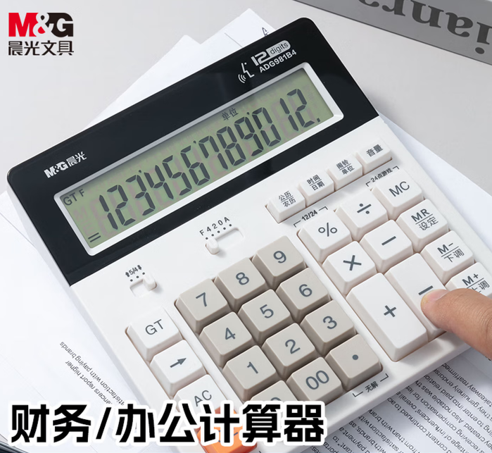 晨光(MG) 文具热门商品 电脑按键语音款计算器 12位大屏显示计算机 财务金融计算专用 白色 ADG981B4