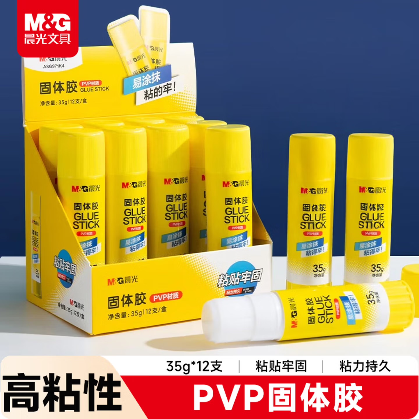 晨光(MG) 35g高粘度PVP固体胶水 无甲醛快干耐用胶棒 高粘固体胶 办公用品 12支装 ASG971K4