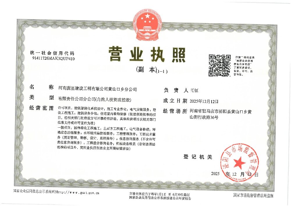 河南澍昱建设工程有限公司黄山口乡分公司