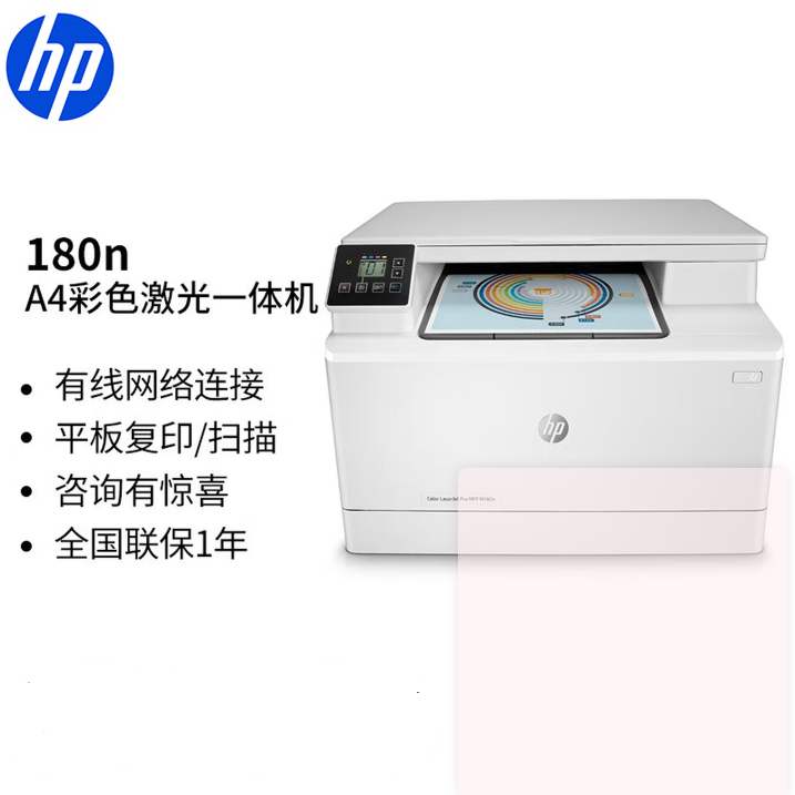 惠普(HP) 180n打印机标配(三合一/有线连接) a4彩色激光复印机扫描机一体机 商用办公