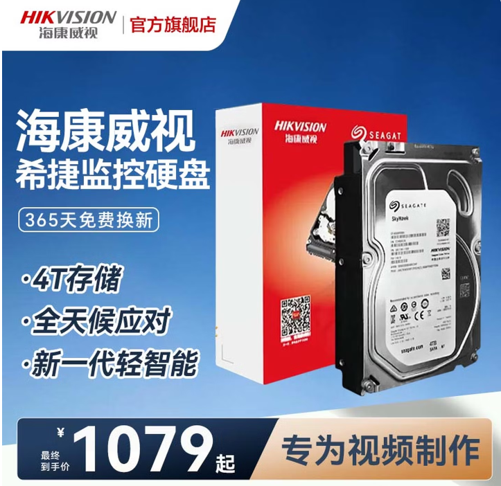 海康威视(HIKVISION) ST4000HKVS002监控级硬盘 录像机专用安防监控硬盘 【4TB硬盘】