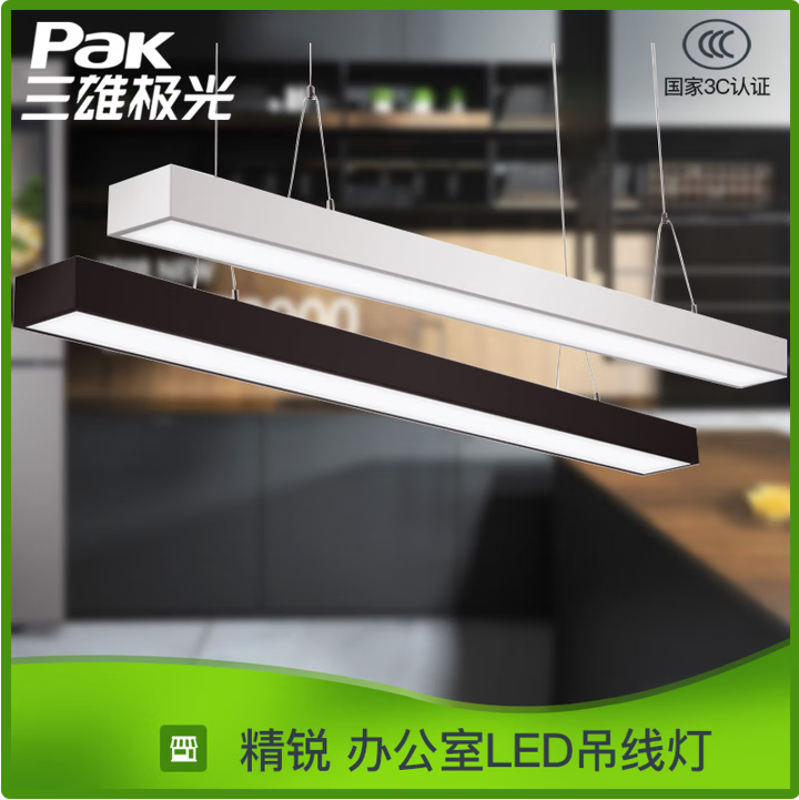 三雄极光 三雄极光办工灯办公室led长条吊线灯方通灯长方形吊线明装吸顶LED灯盘 精锐 32W 120*12*6CM哑白正白光
