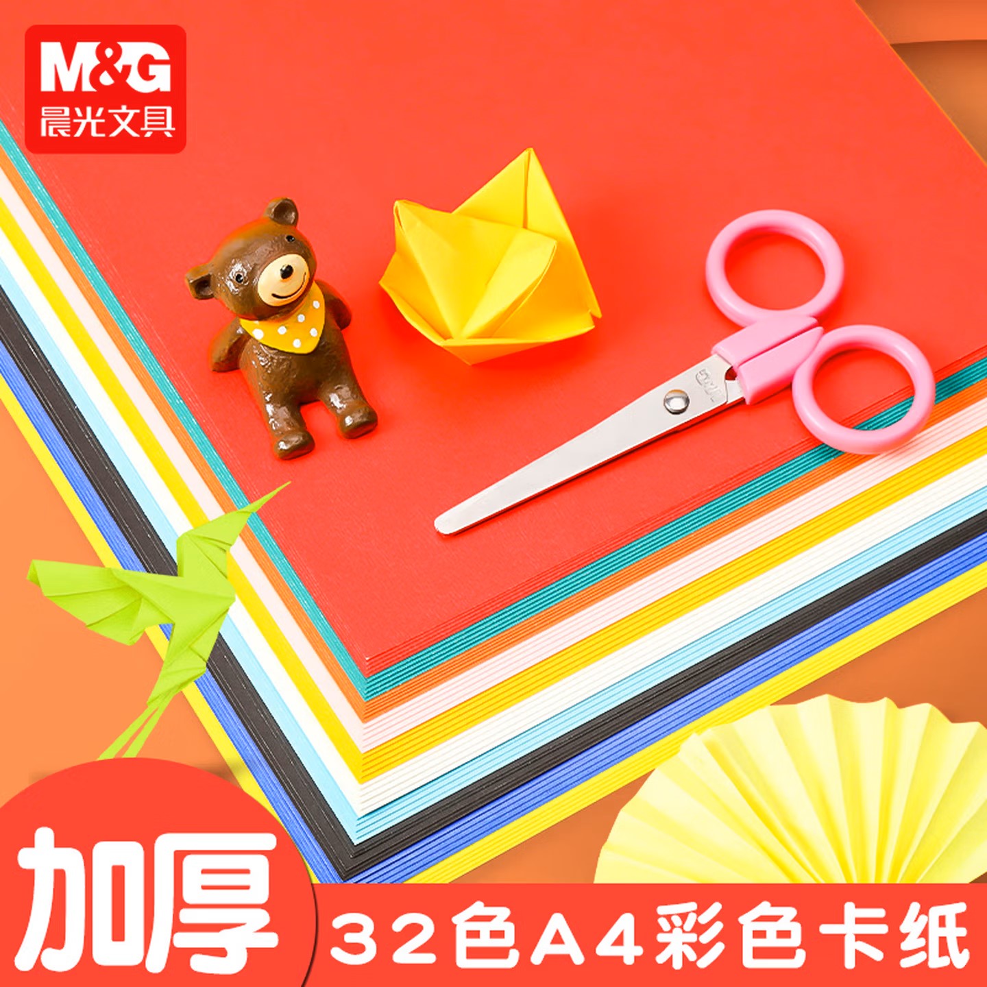 晨光(MG) 4621KBA4学生彩色硬卡纸32色加厚手工折纸儿童幼儿园多功能复印纸