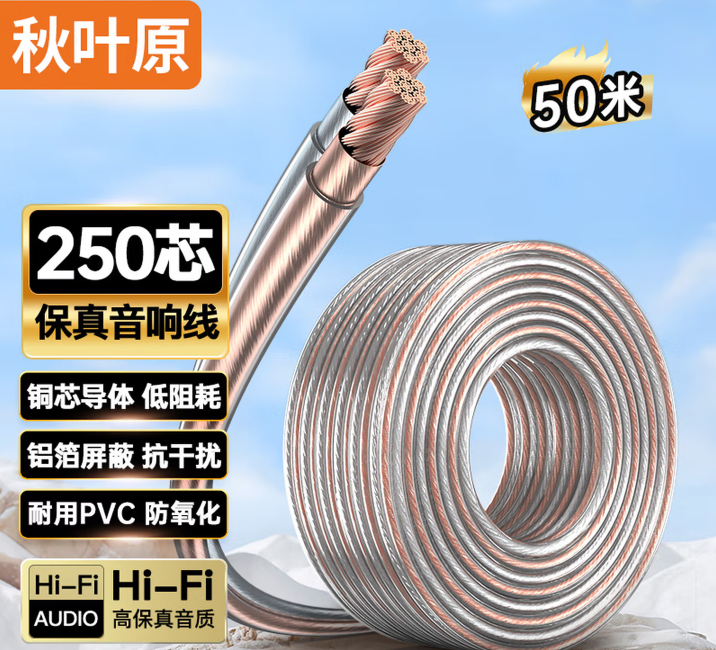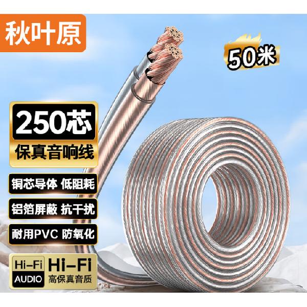 秋叶原(CHSEAL) QS2245T50S音响音箱专用连接线 发烧级纯铜音频喇叭线 功放连接 增强屏蔽抗干扰250芯金银线 50米