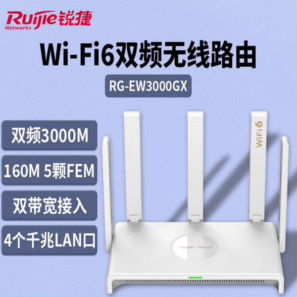 锐捷(RUIJIE) RG-EW3000GX千兆WiFi6家用无线路由双频3000M
