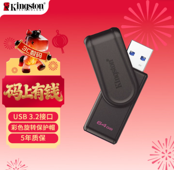 金士顿(Kingston) 64GB USB3.2 U盘 DTXS U盘