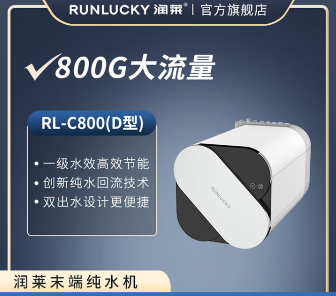 润莱 800G大流量厨下RO机自来水过滤出水直饮反渗透净水器双出水