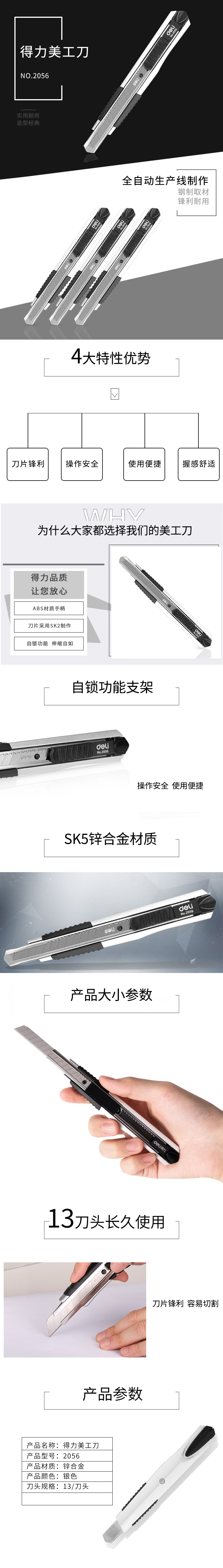 得力(deli) 小号锌合金壳美工刀 自动锁定功能裁纸刀2056