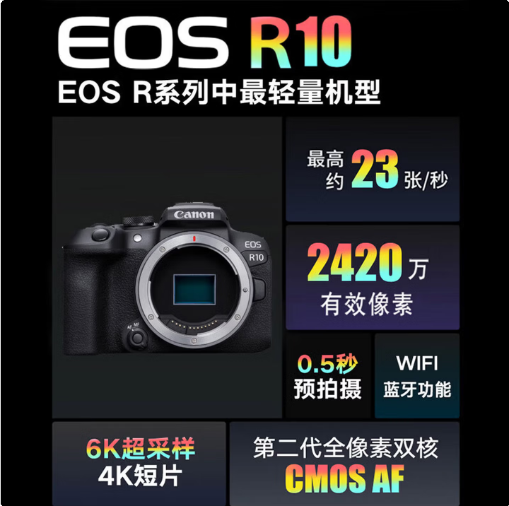 佳能(Canon) EOS R10 微单相机 4K Vlog视频直播 轻量化家用旅游照相机 RF-S 18-150mm大变焦套机 旅行畅玩套装