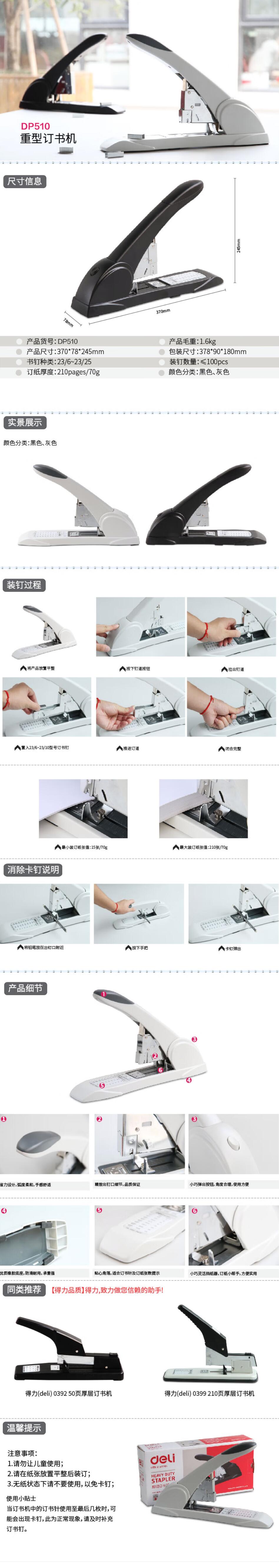 得力(deli) 重型订书机 DP510 210页 黑 1台