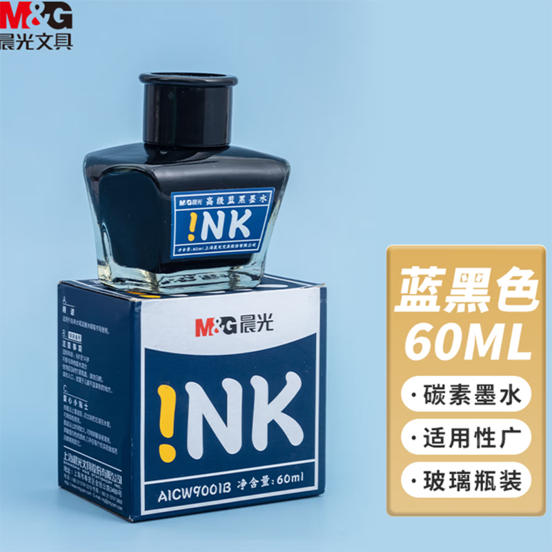 晨光(MG) 蓝黑色60ml高值墨水 大容量不堵钢笔墨水 1瓶装AICW9001