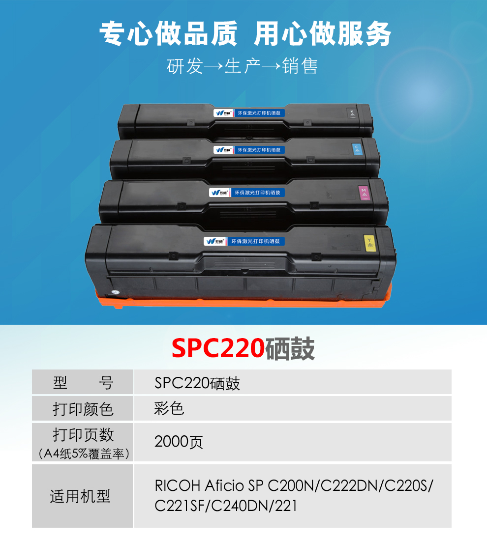 骅威 SPC220 蓝色硒鼓 适用理光 RICOH SP C200N C222DN C220S C221SF C240DN 221 打印机粉盒硒鼓
