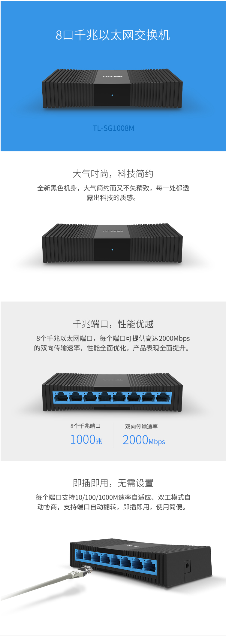 普联(TP-LINK) TL-SG1008M 8口千兆交换机