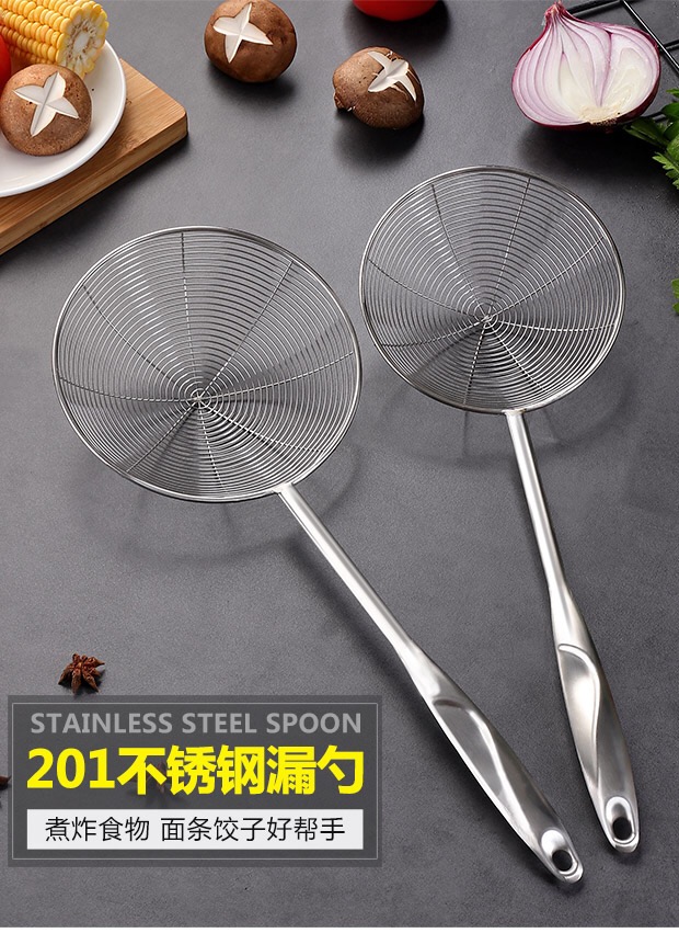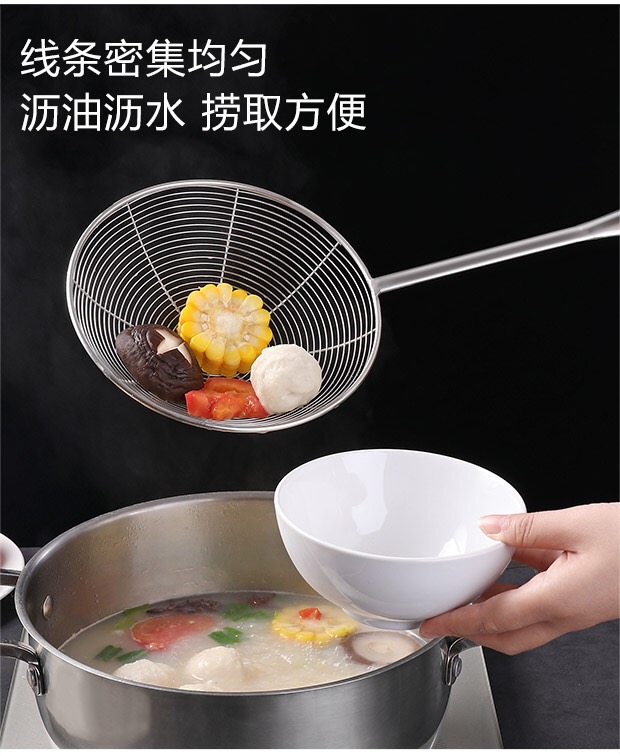 洋业 长柄全钢材质漏勺 不锈钢密网笊篱