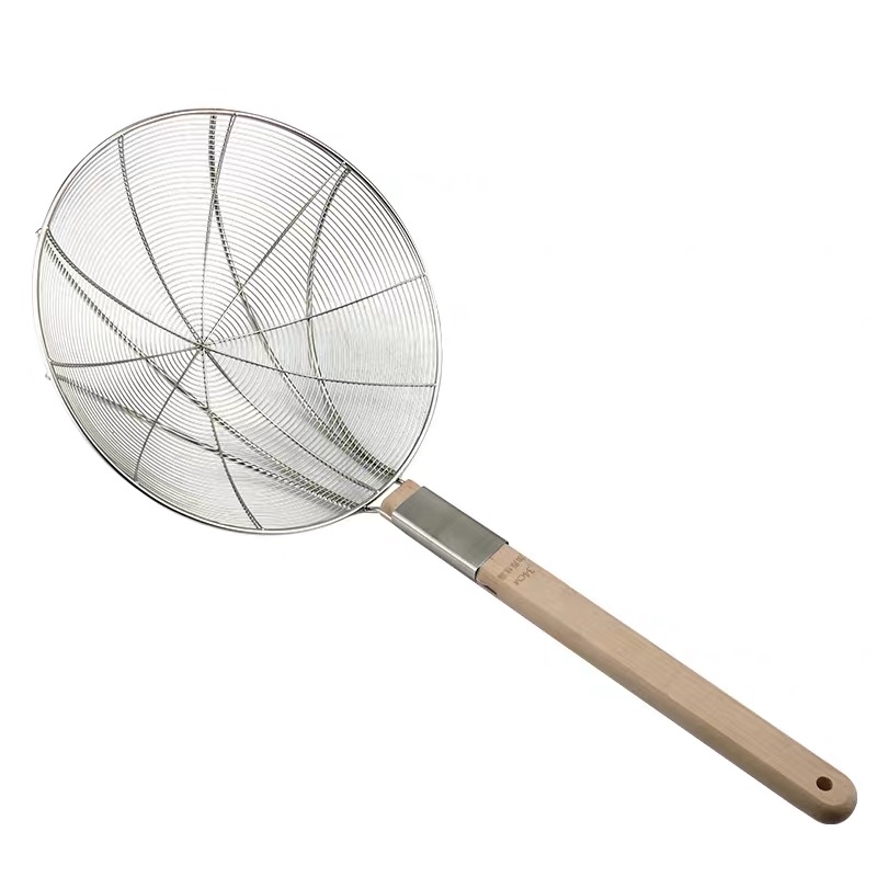 洋业 商用木柄不锈钢厨房捞勺/漏勺 加固加厚28cm
