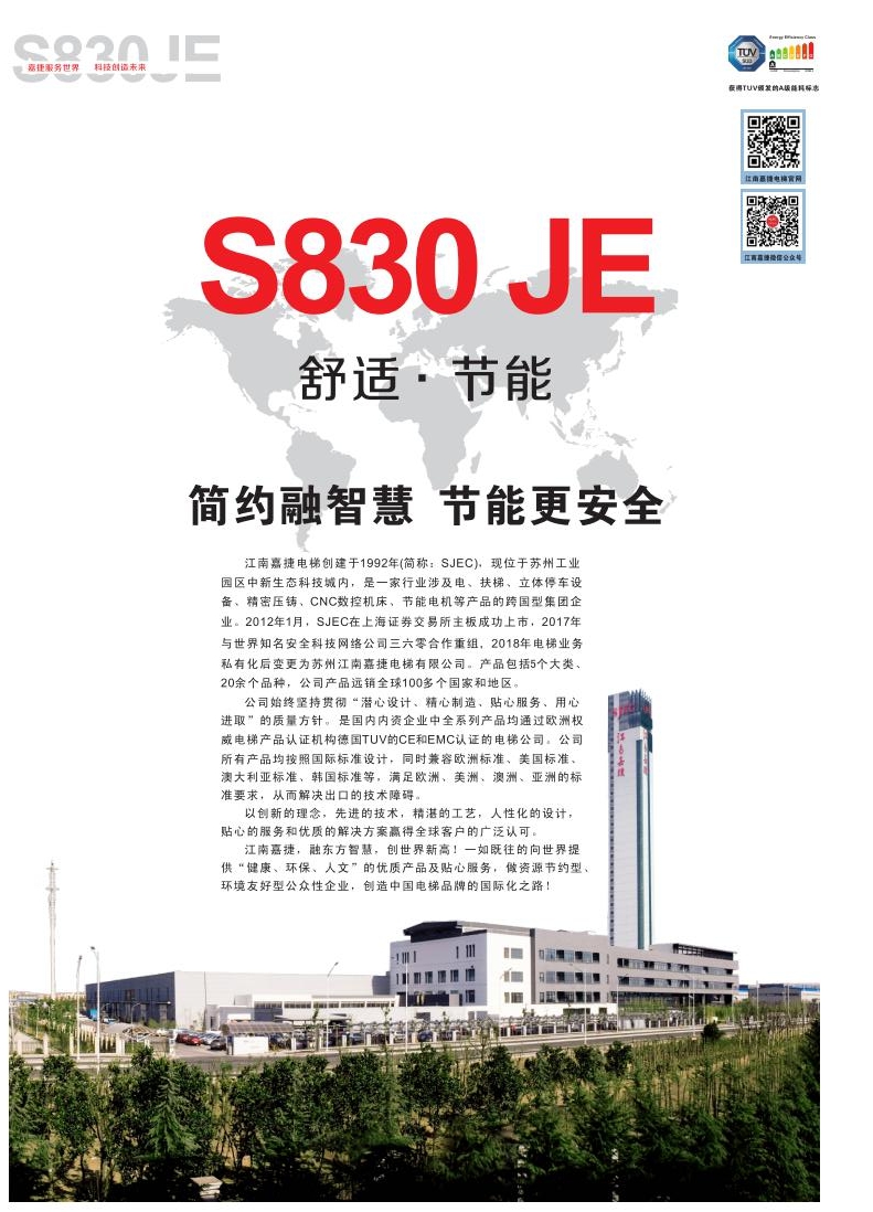 SJEC S830-JE小机房乘客电梯 M1000W15S-CO-6/6/6