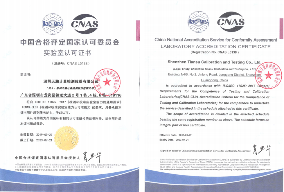 中方检测,是一家经中国合格评定国家认可委员会认可(CNAS证书编号:L11274