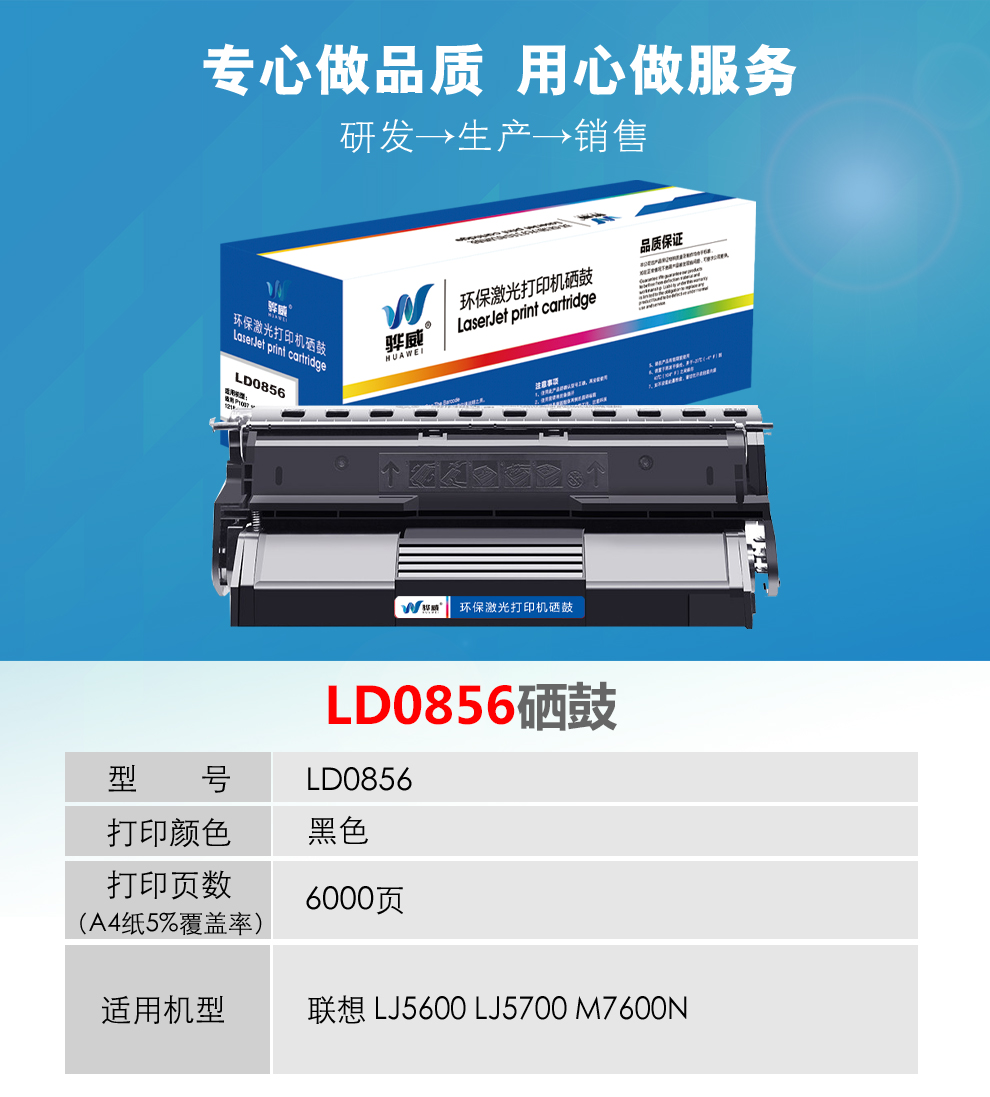 骅威 LD0856 硒鼓 适用联想LJ5600墨盒 LJ5700粉盒 LJ7600N 打印机硒鼓