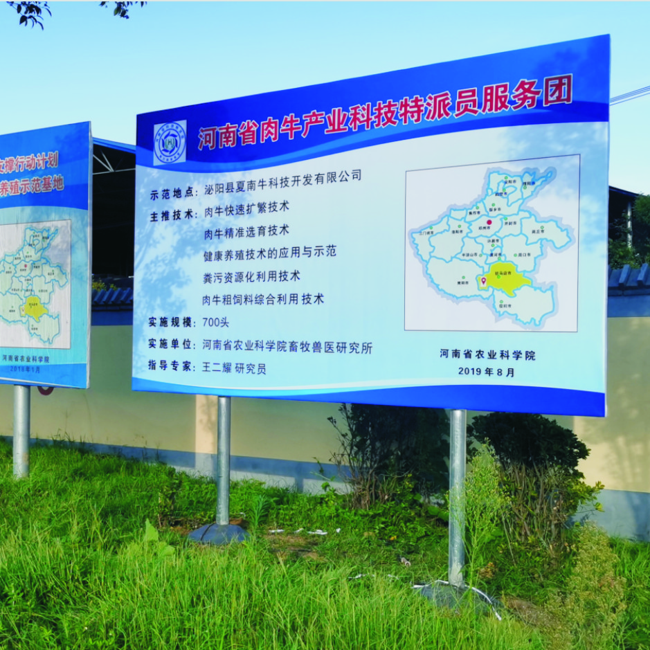 大型铝制标牌,直径165cm镀锌钢管,混泥土基础.