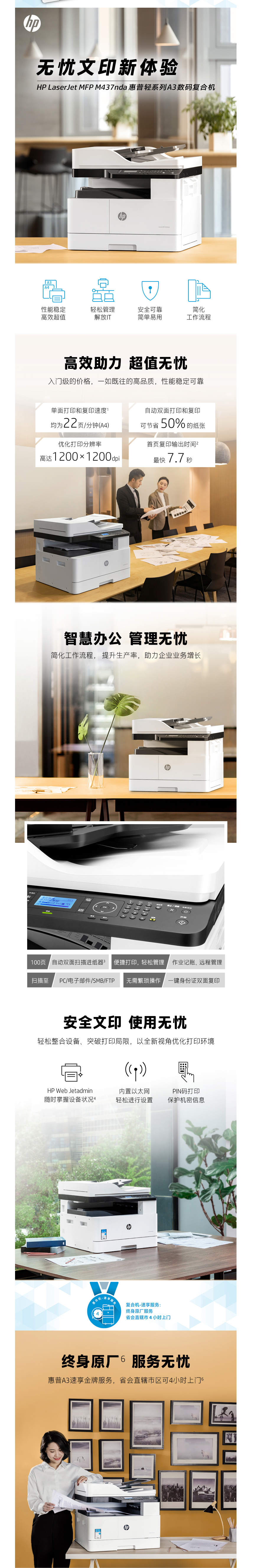 惠普(HP) M437nda A3数码复合机 商用办公 自动双面 打印 复印 扫描 自动输稿